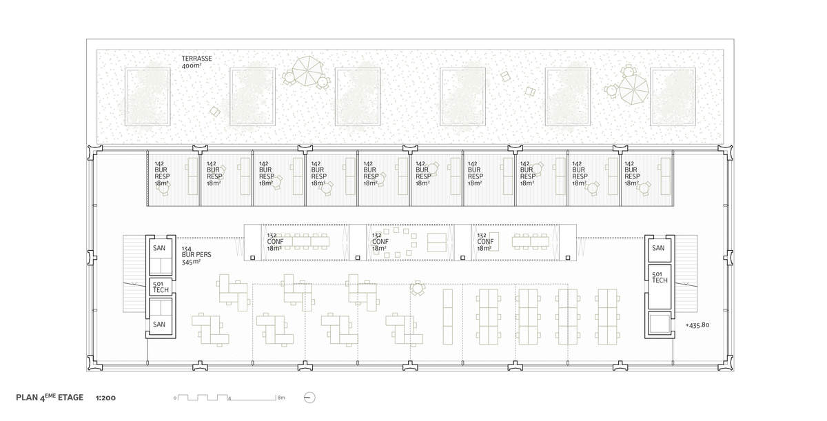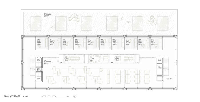L'attique au 4ème étage accueille des surfaces de bureaux et une terrasse végétalisée, accessible à tous.