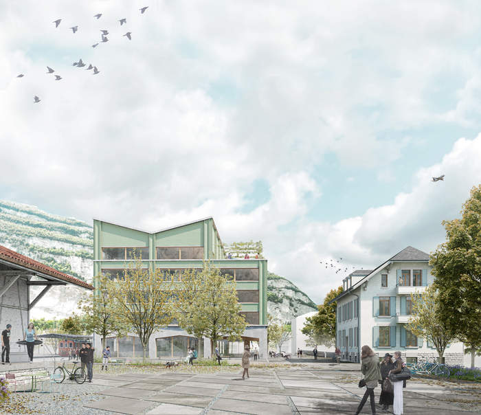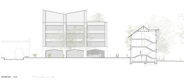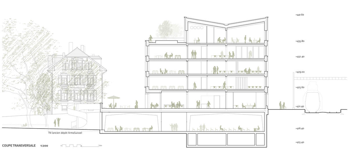 Ce bâtiment historique du XXe siècle joue un rôle significatif dans le nouveau quartier de la Gare. Situé au cœur du site, il est adossé d'une part au plateau de la Gare et suit de l'autre la pente naturelle du terrain du parc. Sa vocation est d'être la maison pour tous, ce qui est assuré par la grande diversité de ses fonctions.