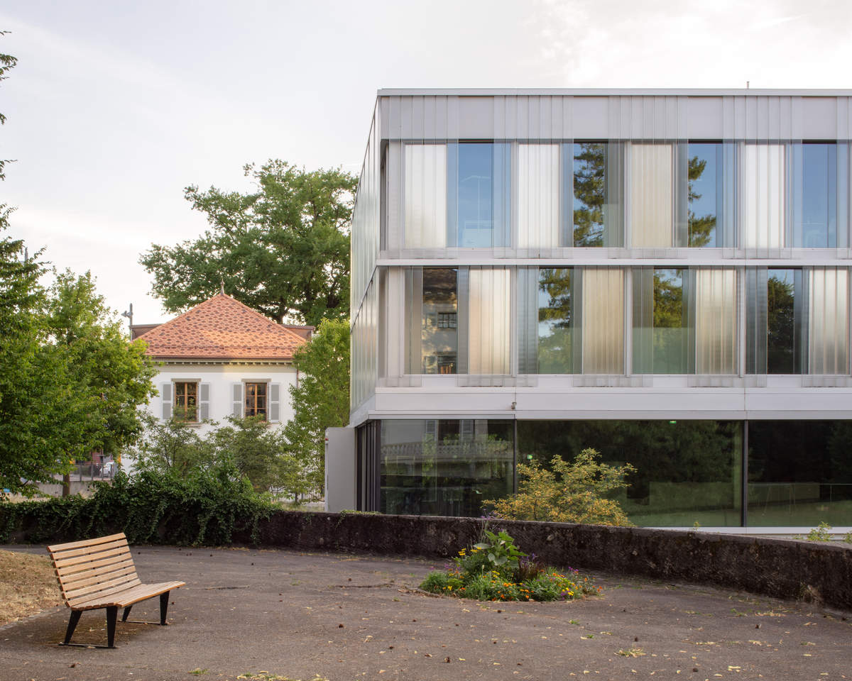 Réalisation du nouveau bâtiment administratif de la ville de Lancy, rénovation de la Villa Rapin et réqualification du parc historique de la Mairie de Lancy. Le bâtiment administratif, labellisé Minergie, et son parking souterrain de 60 places accueillent le service d’état civil, la salle des mariages, le service comptabilité et le service de la police municipale. La distinction intérieure des espaces publics et administratifs est perceptible depuis l’extérieur. Un voile de verre couvre l’ensemble du bâtiment, à l’exception des vitrages des espaces publics. Sa présence crée un jeu de lumière cristalline et propose ainsi une interprétation contemporaine des façades épaisses des bâtiments historiques adjacents.